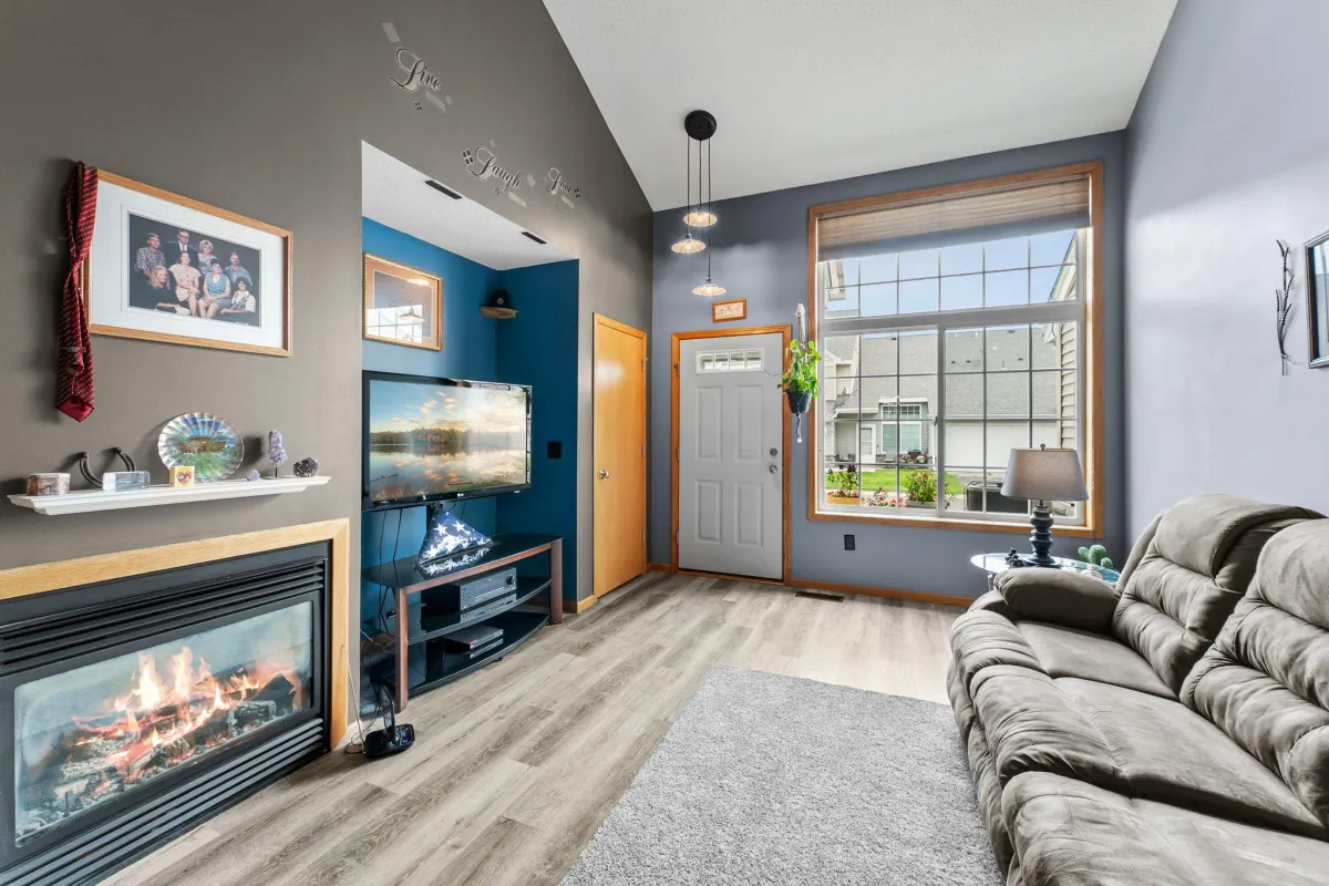 Welcome home to this beautifully updated townhome in a convenient Cambridge location! Built in 2005, this well-maintained property features brand-new flooring and updated countertops, creating a fresh and modern feel throughout the main level. Enjoy cozy evenings by the gas fireplace in the open-concept living area. The layout is thoughtfully designed with main-floor laundry located just off the garage and a convenient ¼-bath for guests. Upstairs, you’ll find two spacious bedrooms plus a large loft—perfect for a home office, hobby space, or second living area. Both the loft and the primary bedroom feature generous walk-in closets, and the upper-level full bathroom includes double sinks for added functionality. Tucked inside a smaller, low-traffic development, this townhome offers peaceful living with easy access to Hwy 65, shopping, dining, and parks. Don’t miss your chance to make this stylish, move-in-ready home yours!